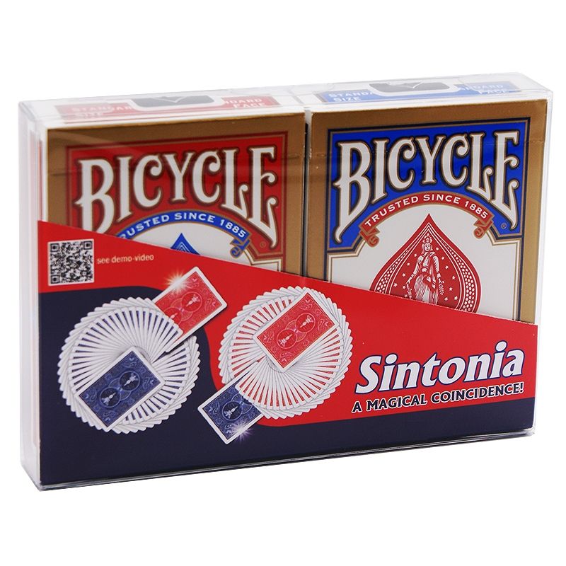 Here is a fantastic effect created by Vincenzo Di Fatta. The magician shows a red and a blue deck of cards. One of them is handed to a spectator. Now the magician and the spectator swap any card of their decks. So the magician slips one of his blue cards among the spectator's red cards, and the spectator slips one of his red cards among the magician's blue ones. Incredibly the two cards will match perfectly!